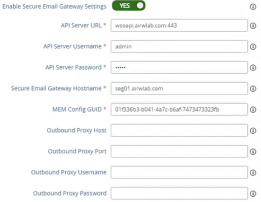 A VMware Workspace ONE administrator made changes to the Secure Email Gateway in the VMware Workspace ONE UEM console. When validating the new settings, the test connection fails.